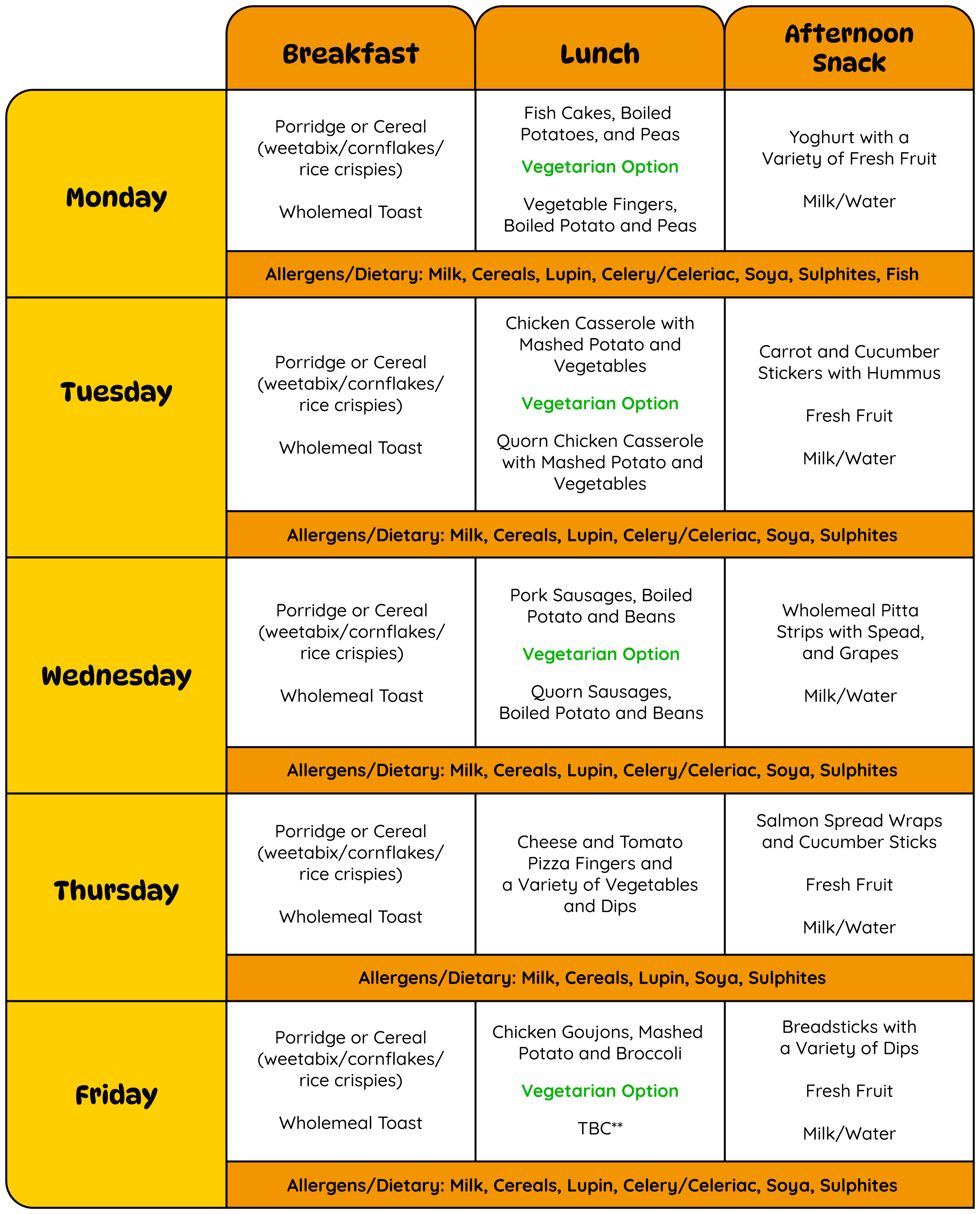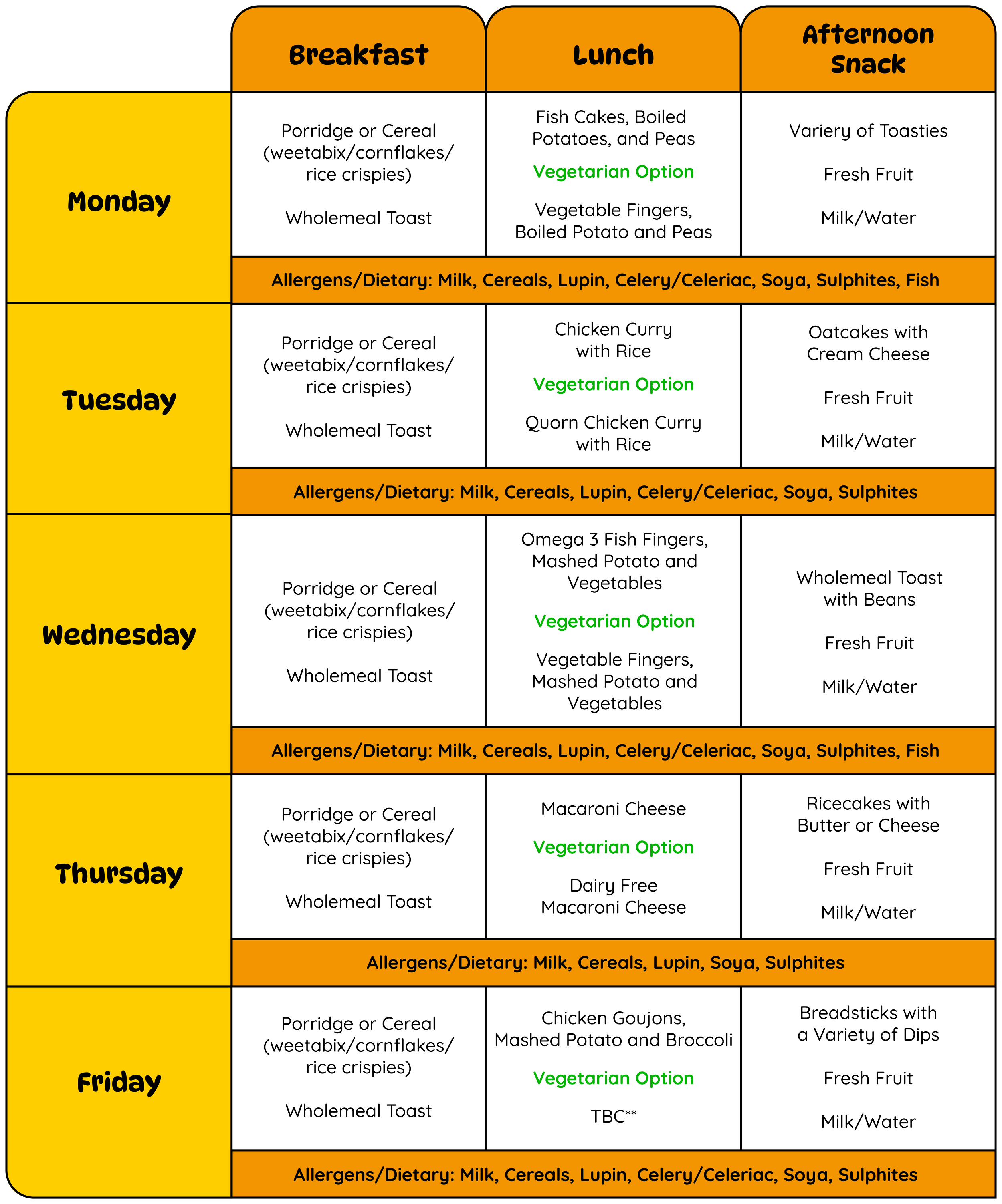 Note: Suitable alternatives will be provided for children with special dietary requirements.